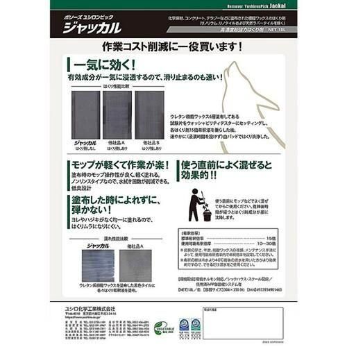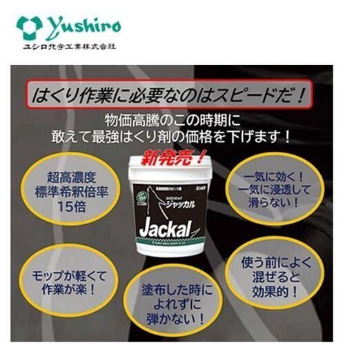 ■JANコード:4933934901463■品番:3130003721■メーカー:ユシロ化学工業株式会社■商品名:ポリーズユシロンピック ジャッカル■容量:18L■主成分:非公開■Ph:12■標準希釈倍率:15倍(使用可能希釈倍率10-30倍)■液色:着色タイプ