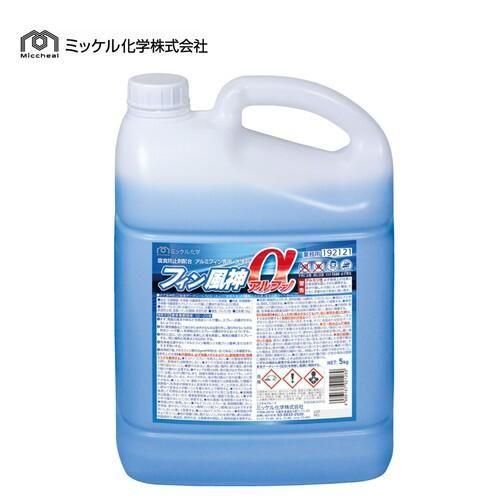 ■JAN:4986167921289■品番:192121■メーカー:ミッケル化学株式会社■商品名:フィン風神α■容量:5Kg■主成分:アルカリ剤、水酸化ナトリウム、水酸化カリウム、2−アミノエタノール、防錆剤、金属イオン封鎖剤、安定化剤■Ph:12.0-12.5(1.0%水溶液、25℃)■標準希釈倍率:10-20倍
