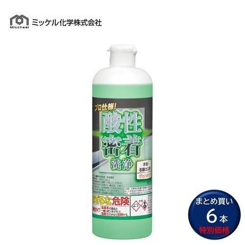 ■JAN:4986167001004■商品コード:151400■メーカー:ミッケル化学株式会社■商品名:プロ仕様 酸性密着洗浄 水垢・石鹸カス用 ジェルタイプ■容量:500g■入数:6本セット■成分:界面活性剤、ポリオキシエチレンアルキルエーテル、スルファミン酸、グリコール酸(ヒドロキシ酢酸)、溶剤、増粘剤、色素、水■Ph:1未満(原液、25℃)、2-3(1%、25℃)■標準希釈倍率:原液