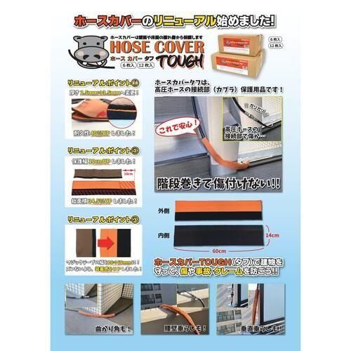 ■JANコード:4573155420116■品番:tr-0066■メーカー:株式会社レボテック■商品名:ホースカバータフTOUGH■入数:12枚セット■サイズ:600mm×140mm■重さ:900g(12枚入)■材質:ネオプレン(クロロプレンゴム)■カラー:オレンジ/黒