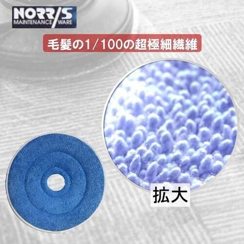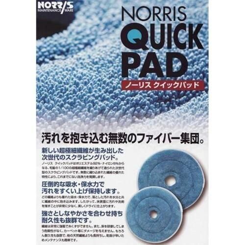 ノーリス NORRIS クイックパッドは毛髪の1/100の超極細繊維で作られた汚れをすくい上げ抱き込むポリッシャー洗浄用カーペットパッドです。綿パッドの2倍以上の保水性・保持性が抜群のため一度掴んだ汚れを放しません。繊維は非常に強靭で糸くずが出ません