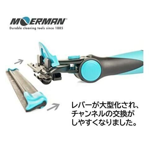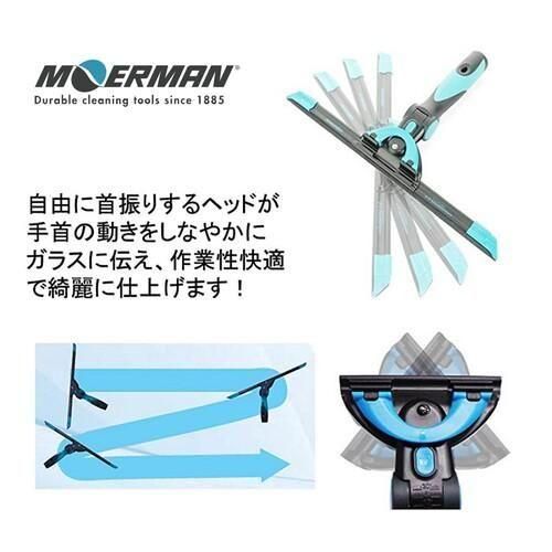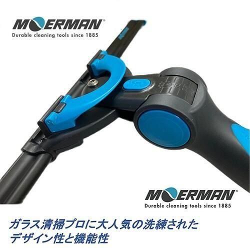 プロに大人気のガラススクイジー、モアマン[MOERMAN]のスクイジーハンドル、エクセレイターハンドル2.0。ヘッドの角度がマイナス方向にも調節可能になり、作業できる範囲がグーンと広がりました。