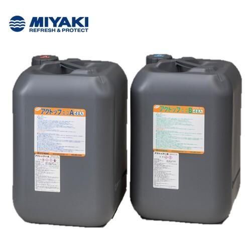 ■メーカー:株式会社ミヤキ■商品名:アクトップエコAB■容量:A/18L×1本・B/18L×1本■入数:1セット■主成分:アクトップA/過酸化水素、安定剤、水・アクトップB/水酸化ナトリウム、漂白助剤、界面活性剤、相溶化剤、水■Ph:中性■標準希釈倍率:(A液)1:(B液)1■標準使用量:5-10平米/L
