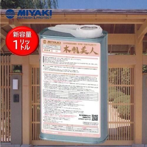 ■メーカー:株式会社ミヤキ■商品名:木肌美人■容量:1L■主成分:フッ素樹脂、シリコーン化合物、紫外線吸収剤、防カビ剤、石油ナフサ 、ノナン、ノルマルプロピルアルコール、ミネラルターペン■標準希釈倍率:原液■標準使用量:15平米/L(2回塗り)