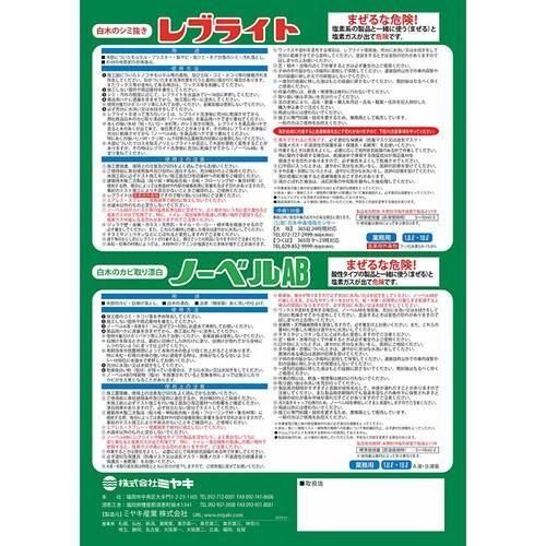 ■検索キーワード:ノーベルAB、ミヤキノーベルAB、白木、あく洗い、カビ、漂白、木用、日焼け落とし、レブライト、まぜるな危険、特殊洗浄剤、ミヤキ、miyaki