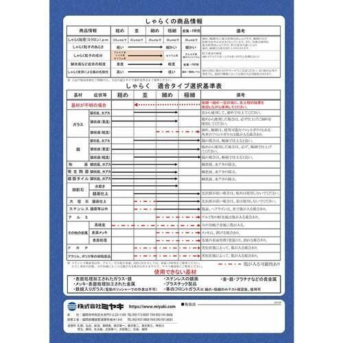 ■メーカー:株式会社ミヤキ■商品名:しゃらく細め■容量:380g■主成分:セリウム、保湿剤、増粘剤、防カビ剤、水■Ph:7.5±0.5■標準希釈倍率:原液■標準使用量:10-20g/平米
