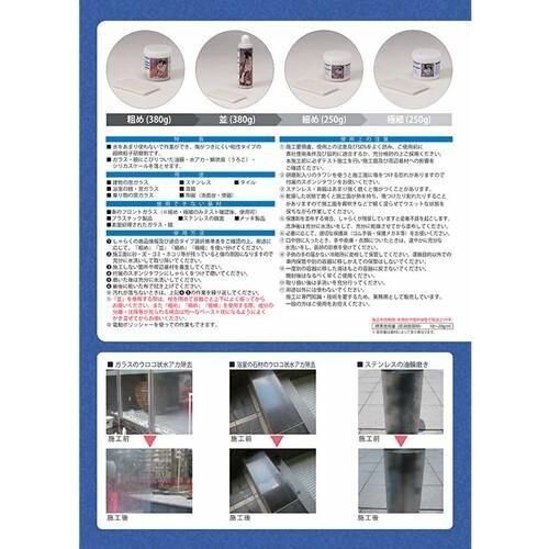 金属・FRPにこびりついた油膜・水アカ・鱗状痕(うろこ)・シリカスケールを水をあまり使わずに除去。超微粒子なので研磨洗浄面に傷が付きにくい。<金属・FRP用>金属・FRPより柔らかい超研磨微粒子を配合してあるため傷を付けずにこびり付き汚れだけを根こそぎ除去