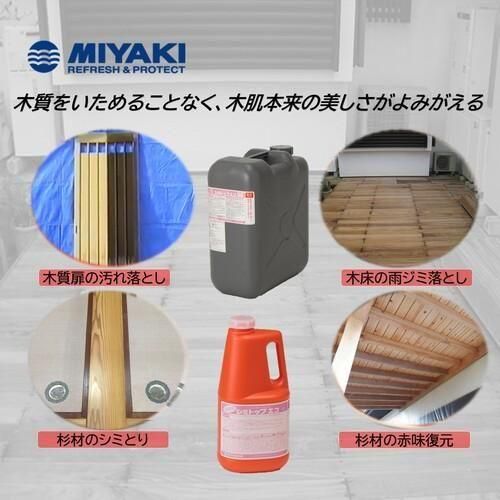 ■メーカー:株式会社ミヤキ■商品名:シミトップエコ■容量:18L■主成分:酸性フッ化アンモニウム、しゅう酸 、無機酸 、助剤、相溶化剤■Ph:1.5±0.5■標準希釈倍率:原液-5倍■標準使用量:5-10平米/L