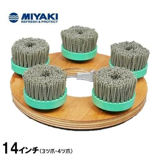■メーカー:株式会社ミヤキ■商品名:グリーンブラシセット■サイズ:14インチ■セット内容:ダイヤブラシ♯80×5個、専用パット台(木台)×1個・4ツ爪または3ツ爪プレート×1個