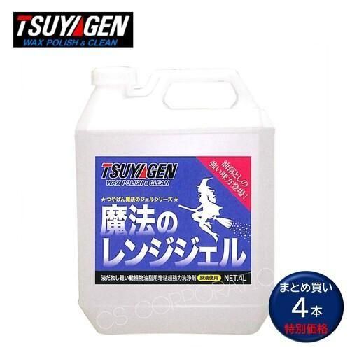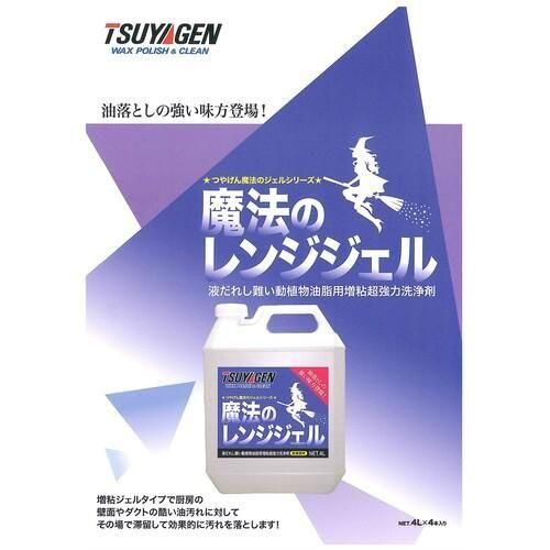 ■製造元:つやげん(TSUYAGEN)■商品名:魔法のレンジジェル■容量:4L(ポリボトル)■入数:4本入■主成分:ジエチレングリコールモノブチルエーテル、2-アミノエタノール、水酸化エタノール、陰イオン界面活性剤、非イオン界面活性剤、増粘剤、水■Ph:13〜14(25℃)■標準希釈倍率:原液-5倍