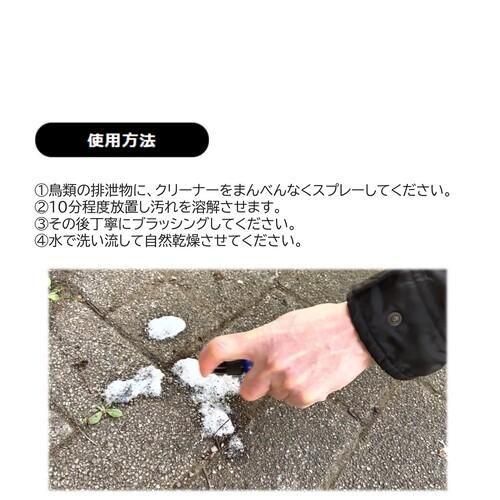 ・鳥のふんに対してスプレーするだけで簡単に殺菌・洗浄が行えます