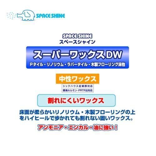 ■JANコード:4524569514021■メーカー:オーブテック■商品名:スペースシャインスーパーワックスDW■容量:4L■成分:アクリル、ポリエチレン、ビニール共重合体、亜鉛、その他■Ph: 7.5(中性)■標準使用量:400平米/4L